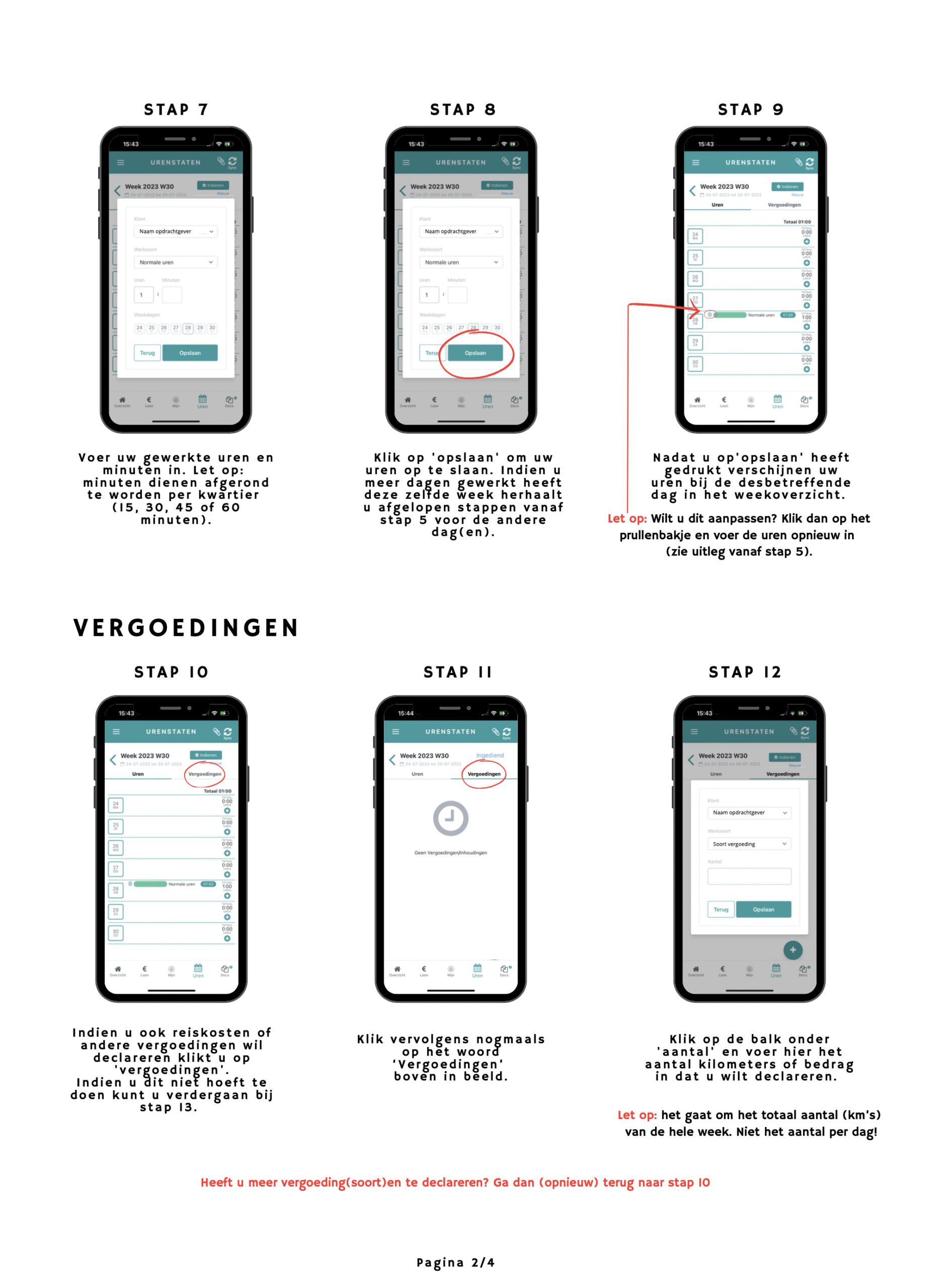 • Uitleg uren invoeren in app
